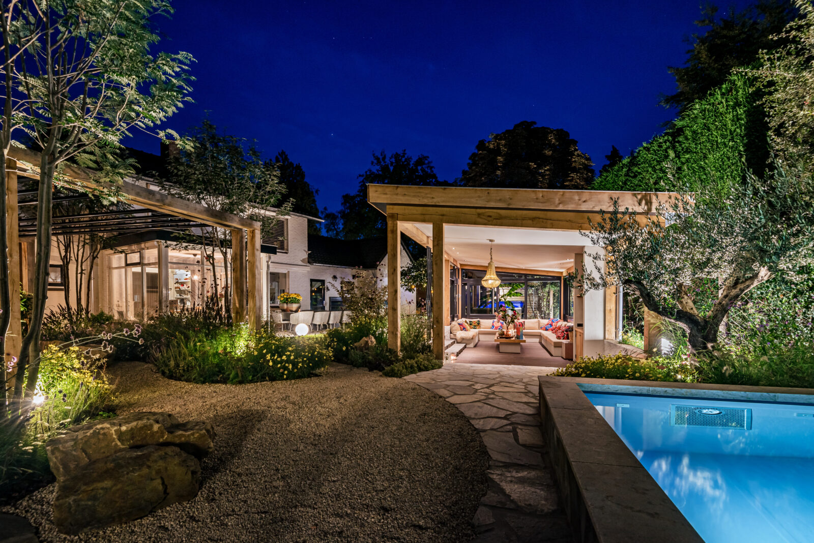 De familie was op zoek naar een tuin waarin ze volledig tot rust kunnen komen. “In onze tuin voel ik echt totale ontspanning. We hebben van de zomer écht genoten van onze tuin. Het woord wat het beste de lading dekt is samenzijn. Samenzijn met familie en vrienden, genieten van het zwembad en de prachtige kleurrijke veranda. Voor iedereen is het een hele fijne, plezierige tuin. En de tuin past ook perfect bij onze persoonlijkheid. Het geeft ons geborgenheid, warmte en tijd om volledig tot rust te komen.”